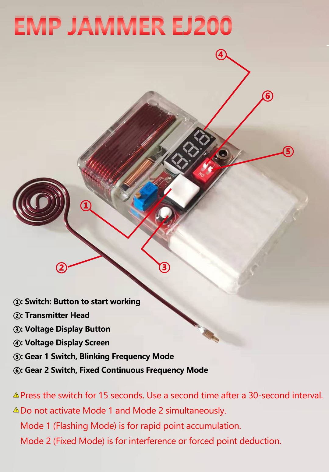 - Operación Dual: Modo de frecuencia fija + modo de mezcla [30HZ - 50HZ] 650MHZ (la combinación de modo de frecuencia fija y modo de mezcla proporciona capacidades versátiles de interferencia. El modo de frecuencia fija ofrece una interferencia precisa y constante en una frecuencia específica, mientras que el modo de mezcla combina frecuencia baja de 30HZ - 50HZ con frecuencia alta de 650MHZ, permitiendo una interferencia eficaz contra una amplia gama de dispositivos objetivo.)